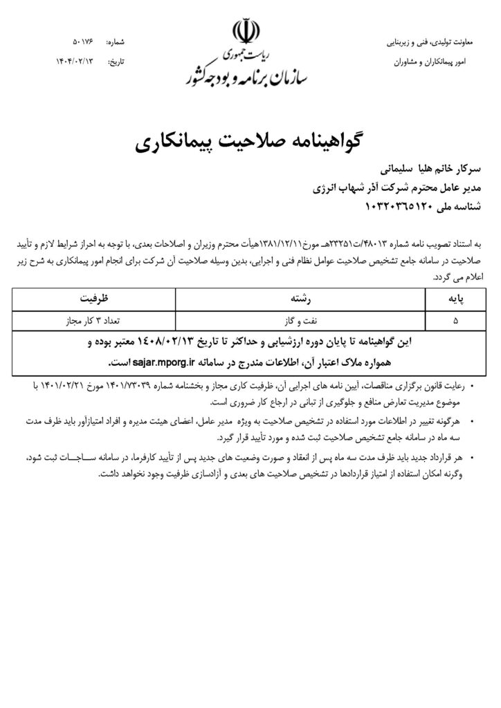 نام شرکت: شرکت آذر شهاب انرژی