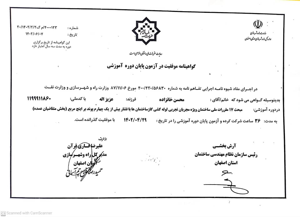 عملیات اجرائی ، تکمیل و اصلاح شبکه گاز فاز ۳ پارک فناوری پردیس